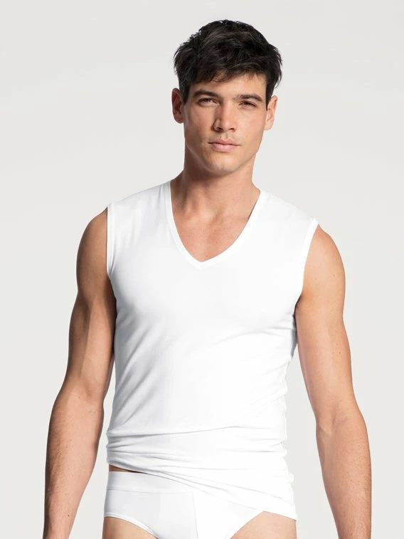 Das Unterhemd aus der Serie COTTON CODE von CALIDA vereint zeitlose Form und höchste Qualität. Dank feinster Baumwolle überzeugt das sportliche Shirt nicht nur in der Qualität, sondern auch mit perfekter Passform und exzellenter Verarbeitung. Die breite Verarbeitung an der Schulter lässt das Unterhemd unter Business-Hemden einfach verschwinden.