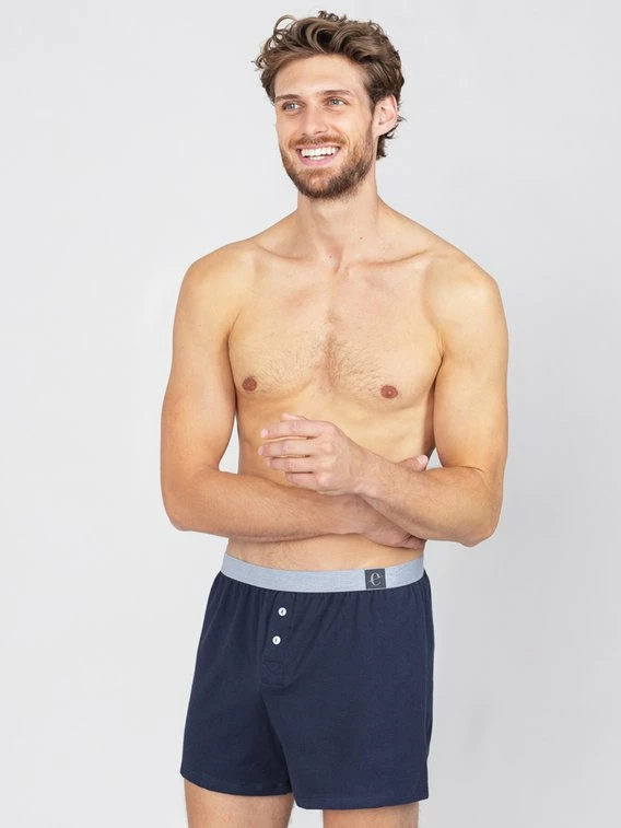 Lässige Boxershorts aus der Serie “Karl” der Marke ERLICH TEXTIL. Das elastische Baumwoll-Jersey hat einen super-soften Griff ohne dabei zu flatterig zu sein. Der Softgummi-Bund mit Logo-Fähnchen sitzt bequem auf der Hüfte. Die Schnittform der Herrenunterhose ist gerade so locker, dass sie sich auch nicht unter der Oberbekleidung abzeichnet. Das Model ist 1,85m groß und trägt die “Karl”-Boxer in der Größe L.