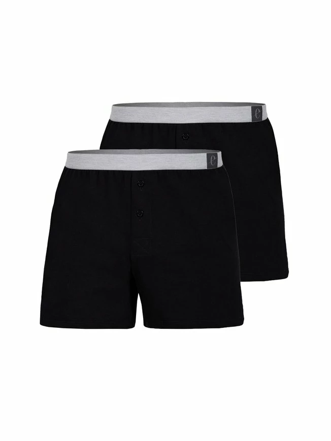 Lässige Boxershorts aus der Serie “Karl” der Marke ERLICH TEXTIL. Das elastische Baumwoll-Jersey hat einen super-soften Griff ohne dabei zu flatterig zu sein. Der Softgummi-Bund mit Logo-Fähnchen sitzt bequem auf der Hüfte. Die Schnittform der Herrenunterhose ist gerade so locker, dass sie sich auch nicht unter der Oberbekleidung abzeichnet. Das Model ist 1,85m groß und trägt die “Karl”-Boxer in der Größe L.