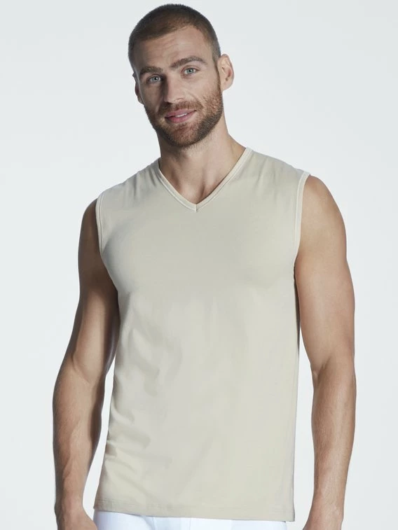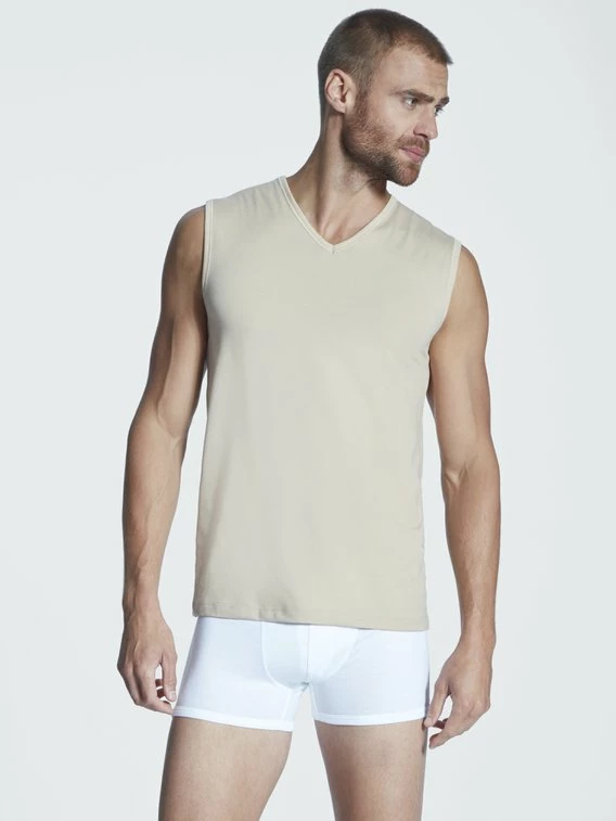 Ausgezeichnet! Enganliegendes Achselshirt aus einer hochwertigen Baumwolle, Micro-Coolmax und Lycra. Innovative Wäsche für den Alltagsbedarf mit optimalen Zusatzfunktionen: sehr guter Feuchtigkeitstransport, hohe Atmungsaktivität, kurze Trocknungszeit und geruchshemmende Wirkung. Spezielle Thermofixierung des Elasthans sorgt für eine perfekte Formbeständigkeit.