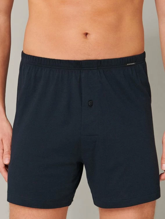 Klassische Herren-Boxershorts von SCHIESSER aus der Serie „Boxer Plus“. Die Shorts bestehen aus 100% angenehm weicher Baumwolle und sind praktischerweise gleich im Doppelpack erhältlich. Durch den geraden Schnitt bieten die Boxershorts Bewegungsfreiheit, zudem liegt der schmale Bund leicht am Körper an. Der Eingriff ist mit einem Knopf versehen.