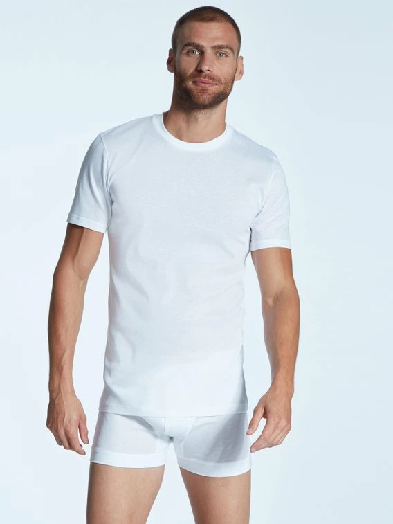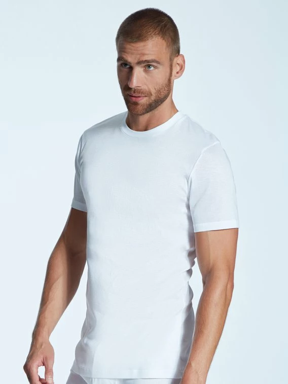 Klassisches Kurzarm-Shirt aus Feinripp aus der Serie “Business Class” von ZIMMERLI. 100% merzerisierte Baumwolle ist extra langlebig, hat eine glatte Oberfläche, leichten Glanz und einen soften Griff. Die Feinripp-Verarbeitung sorgt für Elastizität und hält das Unterhemd formstabil, selbst nach vielen Wäschen.